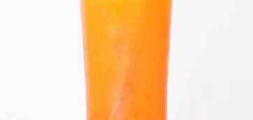 Barevný koktejl s broskvovým džusem a vanilkovou vodkou.