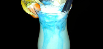 Modrý koktejl s převahou bílého rumu a ananasového džusu.